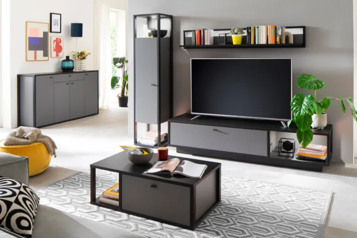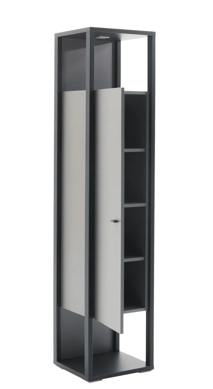 Die 1-türige Vitrine LUXOR hat die Maße 40 x 178 cm und ist zeitlose elegant. Dank der schlanken Form ist der Schrank in den Farben Royal grau/ anthrazit ideal für kleinere Räume. Die Vitrine passt in modern eingerichtete Wohnzimmer und ist mit zwei offenen Fächern zum Zeigen schöner Objekte ausgestattet. Das Schrankteil mit drei Einlegeböden bietet zusätzlichen Stauraum. Die schöne Vitrine setzt einen Akzent und schafft eine wohnliche Atmosphäre.