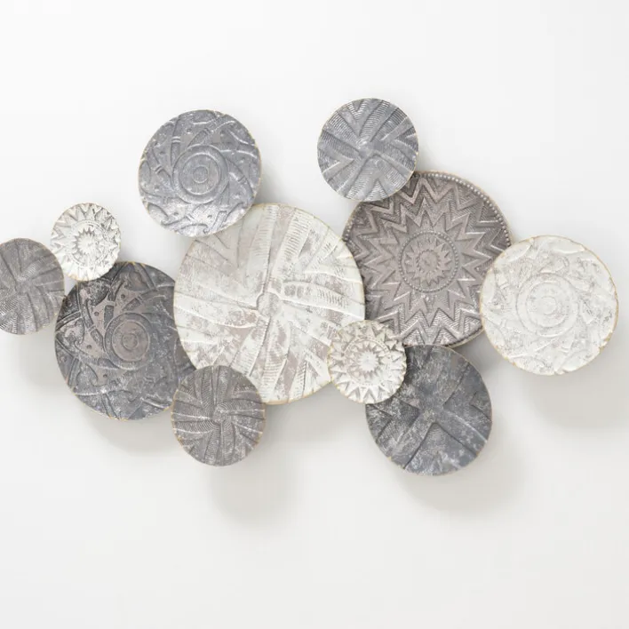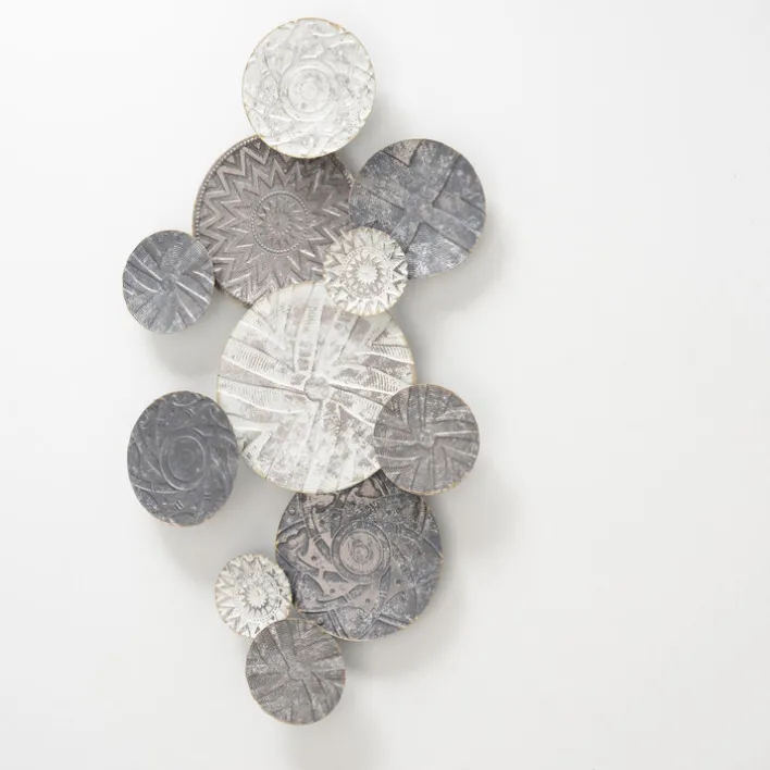 Die Wanddeko CARITAN ist 110 cm breit, hat eine Höhe von 60 cm und ist 7 cm tief. Sie setzt sich aus einer Vielzahl von runden Elementen zusammen, die alle anders gestaltet sind. In der Gesamtheit ergibt sich ein stimmiges Gesamtbild, das jeden Raum optisch aufwertet. Die Wanddeko CARITAN ist ein toller Blickfang für das Wohnzimmer, Schlafzimmer oder das Gästezimmer. Auch in der Diele oder im Esszimmer zieht sie alle Blicke auf sich. Sie passt sowohl zu einem modernen, als auch zu einem klassischen Einrichtungsstil.