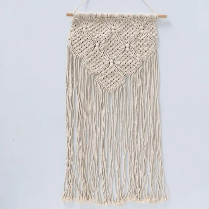 Die Wanddeko MAKRAMEE wird inklusive Aufhänger geliefert. Seine Höhe liegt bei 80 cm, die Breite beträgt 43 cm. Die Deko besteht aus Polyester und Buchenholz.