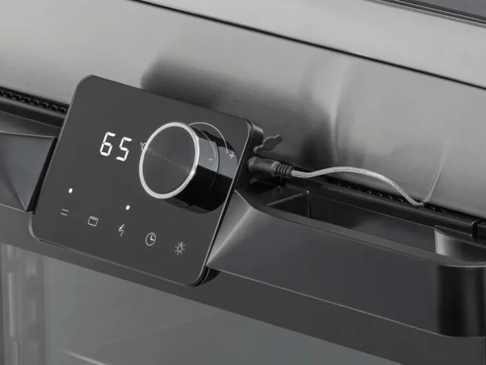 Der WMF Elektrogrill PROFI PLUS Urban Master ist ein kompakter 2-in-1-Grill, der auch auf dem Balkon Platz findet. Er kombiniert zwei emaillierte Grillplatten mit offengerippten Bereichen mit einem Backofen. Dank Drehknopf, Touch-Tasten und LED-Anzeige ist der Elektrogrill dabei besonders einfach in der Handhabung. Der Backofen erreicht eine Temperatur von maximal 200 °C und ist unter anderem ideal für das Ruhen und Nachziehen von Fleisch geeignet.