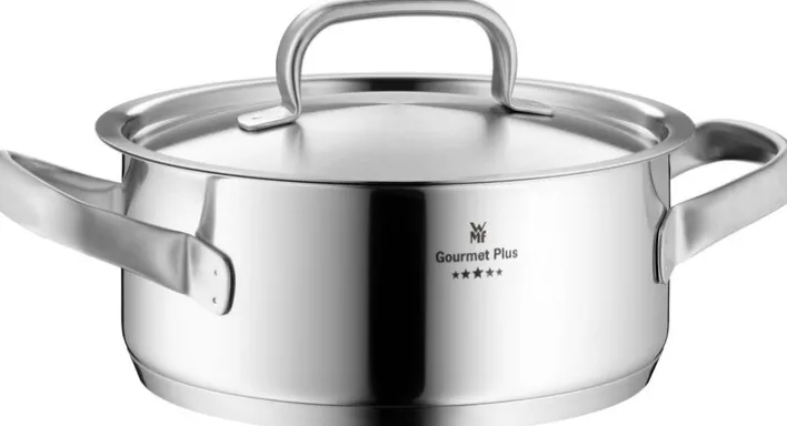 Wer gerne und regelmäßig kocht, braucht verschiedene Töpfe, wobei sich für die Standardausstattung ein paar Grundformen bewährt haben. Diese kombiniert WMF in unterschiedlichen Größen zu einer vielfältigen Auswahl, wobei Fleisch- oder Bratentöpfe in keinem Set fehlen dürfen. In den Fleischtopf passt alles rein, was zum Kochen viel Flüssigkeit braucht, da sein Rand besonders hoch ist, spritzt beim Braten von Fleisch nichts heraus und auch Nudeln, Kartoffeln und Gemüse nimmt er ohne Probleme auf. Der Bratentopf ist eine Kombination aus Pfanne und Fleischtopf, der Rand ist höher als bei der Pfanne, somit spritzt beim Braten kaum Fett heraus. Zugleich ist der Rand niedriger als beim Fleischtopf, damit die Flüssigkeit schneller verdampft und Sie das Fleisch/Gemüse problemlos wenden können. Gefertigt aus pflegeleichtem und robustem Cromargan®, sind alle Töpfe mit einem TransTherm® Allherdboden ausgestattet und so für alle Herdarten inklusive Induktion geeignet.