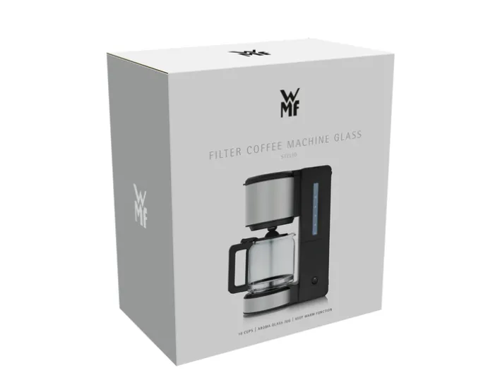 Mit kompakten Abmessungen von 18,5 cm Länge, 31,5 cm Breite und 36 cm Höhe passt das Gerät gut auf Küchenarbeitsplatten. Das Fassungsvermögen der Glaskanne beträgt 1.250 ml. Die maximale Leistung liegt bei 1.000 Watt, der Anschluss erfolgt über einen Netzstecker. Die Hauptfarbe ist Silberfarbig in Kombination mit Schwarz, ergänzt durch klare Glaselemente und den Farbton Paper Grey. Das Gewicht beträgt 2,88 kg. Die Kaffeemaschine eignet sich für den Einsatz im Küchenbereich und stammt von der Marke WMF.