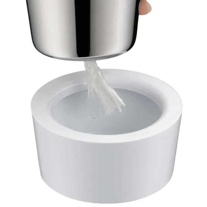 Der WMF Kräutergarten besteht aus Übertopf, Wassertank und Glasfaserdocht. Der silberfarbige Cromargan Edelstahl 18/10 ist rostfrei und poliert.