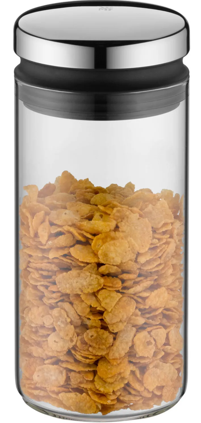 Das formschöne Vorratsglas DEPOT kommt in jeder Küche gut zur Geltung. In ihm lassen sich Lebensmittel hygienisch, säurefest, geschmacksneutral und gut sichtbar aufbewahren. Dazu wird der Deckel der Vorratsdose einfach auf das Glas gedrückt. Er verschließt aromadicht, wodurch die Lebensmittel länger frisch und Nährstoffe erhalten bleiben. Das WMF Vorratsglas schützt gegen Hitze und Feuchtigkeit und eignet sich hervorragend zur Aufbewahrung von Lebensmitteln wie Nudeln, Nüsse, Müsli, Zucker oder Gewürze.