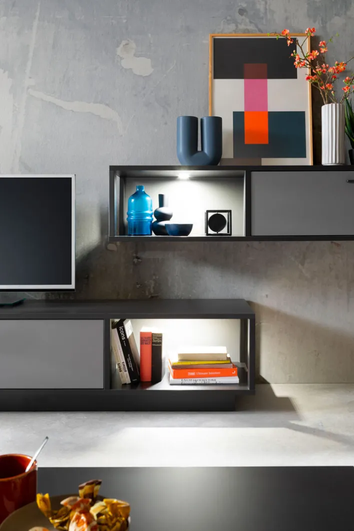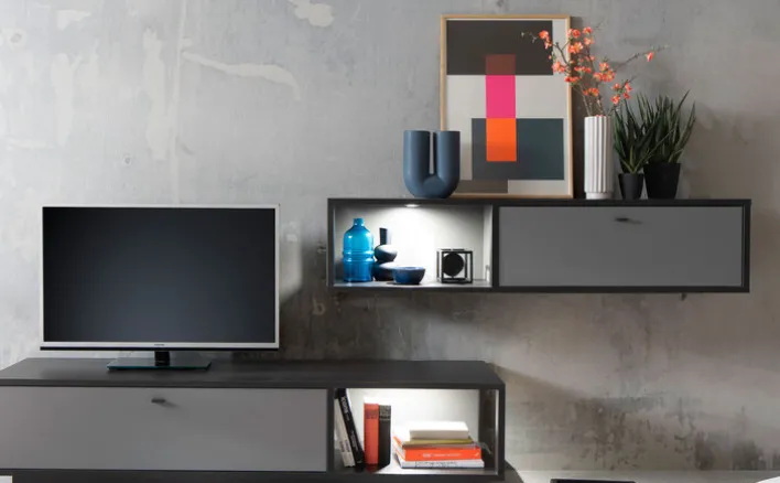 Wohnwand LUXOR 2-teilig Royal grau/ anthrazit