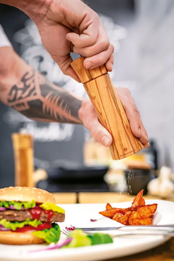 Die ZASSENHAUS Salzmühle FRANKFURT ist aus Olivenholz gefertigt und besitzt ein Mahlwerk aus Hochleistungskeramik. Olivenholz ist ein sehr hochwertiges Holz, das eine hohe Resistenz gegen Schimmelbefall hat und stark wasserabweisend ist. Es nimmt keine fremden Gerüche an und ist fleckenabweisend. Sollte dennoch einmal eine Reinigung nötig sein, genügt ein Abwaschen des Holzes mit warmem Wasser. Durch die hohe Dichte des Olivenholzes hat die Salzmühle einen sehr wertigen Eindruck. Die 18 cm hohe Salzmühle hat einen Durchmesser von 5,5 cm. Mit ihrem geschwungenen Design liegt sie gut in der Hand und präsentiert sich mit einer ansprechenden Optik in der warmen Farbe des Olivenholzes. Ob als praktischer Alltagsbegleiter in der Küche oder als Dekorationsartikel auf dem Esstisch – die ZASSENHAUS Salzmühle FRANKFURT macht in jeder Situation eine gute Figur. #porta #zuhausesindwir #portamöbel #meinporta #portamöbel #coffeeculture