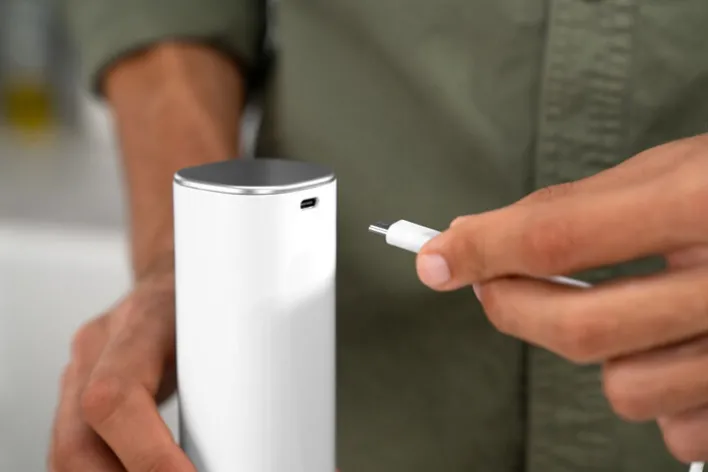Das stabile Gehäuse der Salz- & Pfeffermühle ENFINIGY besteht aus Metall und hat lackierte Oberflächen. Das Sichtfenster ist aus transparentem Kunststoff hergestellt. Die Salz- & Pfeffermühle ist mit einem wiederaufladbaren Li-Ionen-Akku ausgestattet, der eine große Kapazität hat.