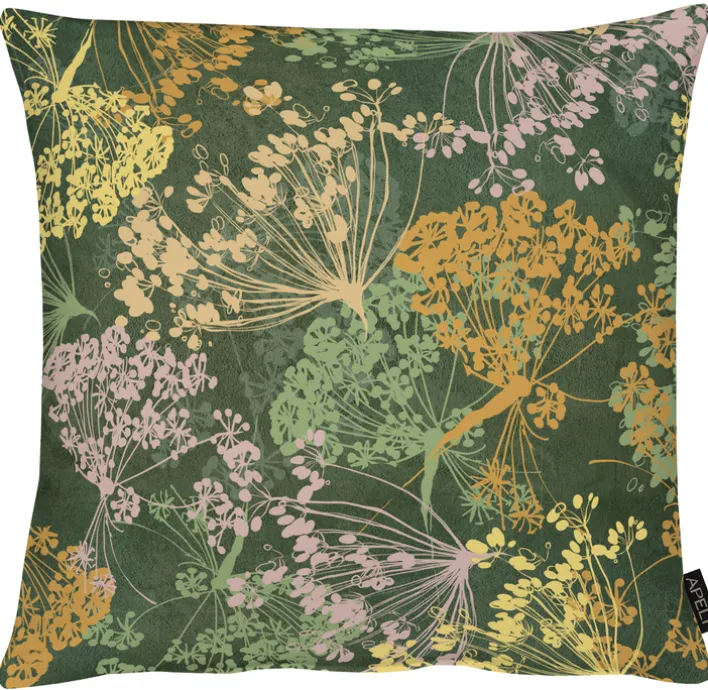 Auf der grünen, 49 x 49 cm großen Kissenhülle HERBST BOUQUET prangen zarte, filigrane Blüten und Dolden, die dem Design einen sehr natürlichen und charmanten Charakter verleihen.