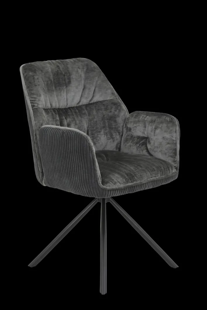 Der anthrazitfarbene Armlehnstuhl AMIRA im 2er-Set sorgt für einen einheitlichen Look, zum Beispiel im Wohn- oder Arbeitszimmer. Auffällig ist die einfallsreiche Stoffkombination, denn während die Außenseiten ein robuster Cordstoff umhüllt, präsentiert sich das Set innen mit einem Samtstoff._x005f_x000D_