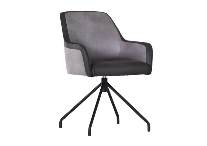 Der Stuhl besticht durch seine elegante Farbgebung in hell- und dunkelgrauer Microfaser, die einen stilvollen Kontrast bildet. Das Material besteht aus 100 % Polyester, was für Langlebigkeit und einfache Pflege sorgt. Das Vierfußgestell aus pulverbeschichtetem Metall in Schwarz verleiht dem Stuhl eine robuste Basis und unterstreicht den modernen Stil. Dieser Armlehnstuhl ist eine ideale Ergänzung für jedes moderne Wohnambiente und bietet sowohl Komfort als auch ästhetischen Reiz.