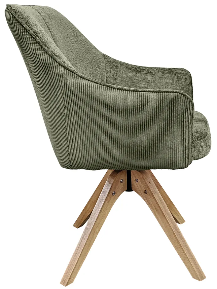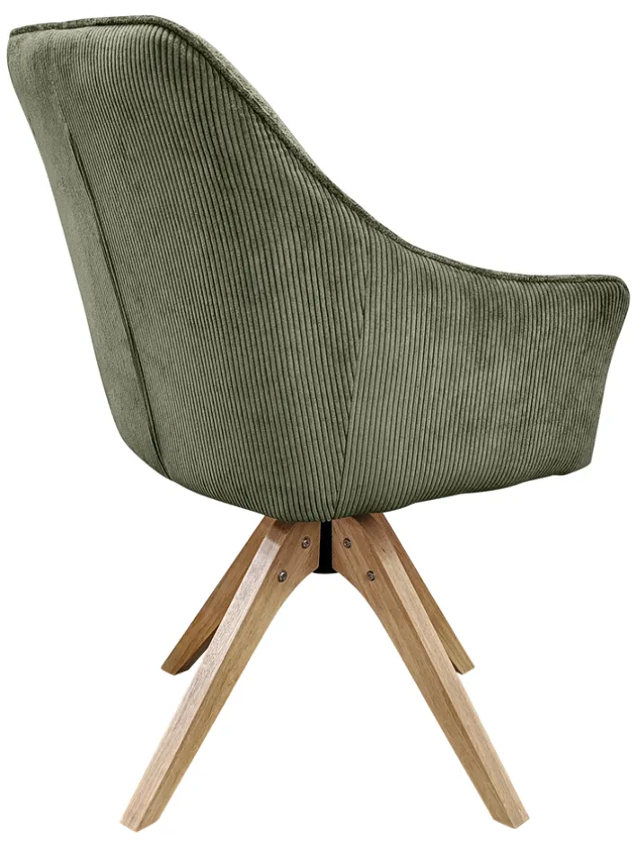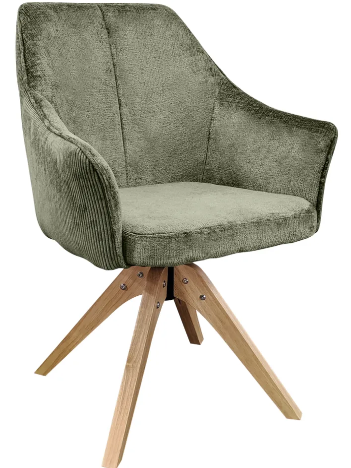 Der komfortable Armlehnstuhl Jessy mit Bezügen in Cord/Mikrofaser in der Farbe Grün ist eine Bereicherung für den modernen Wohn- oder Essbereich. Durch das stilvolle Design mit Vierfußgestell und Sitzschale passt der um 360° drehbare Stuhl zu verschiedenen Einrichtungsstilen. Die weich gepolsterte Sitzschale und ein hautfreundlicher Bezug sorgen für eine angenehme und bequeme Sitzposition auch bei längerem Sitzen. Der Armlehnstuhl schafft eine gemütliche Atmosphäre.