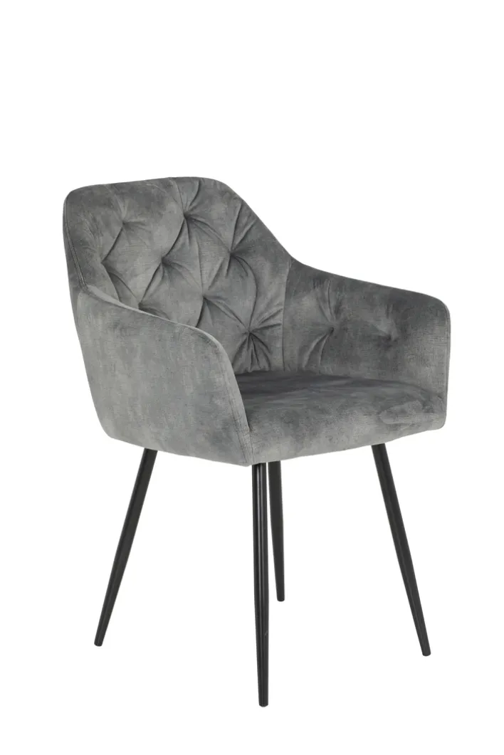 Der traumhaft schöne Armlehnstuhl TINA im 2er Set versprüht mit seinem Bezug aus Samtvelours in Anthrazit einen faszinierenden Vintage Charme und zieht mit seiner aufwendigen Steppung alle Blicke auf sich.Ausgestattet wurde TINA zudem mit einer fest gepolsterten Sitzschale und bequemen Armlehnen._x005f_x000D_