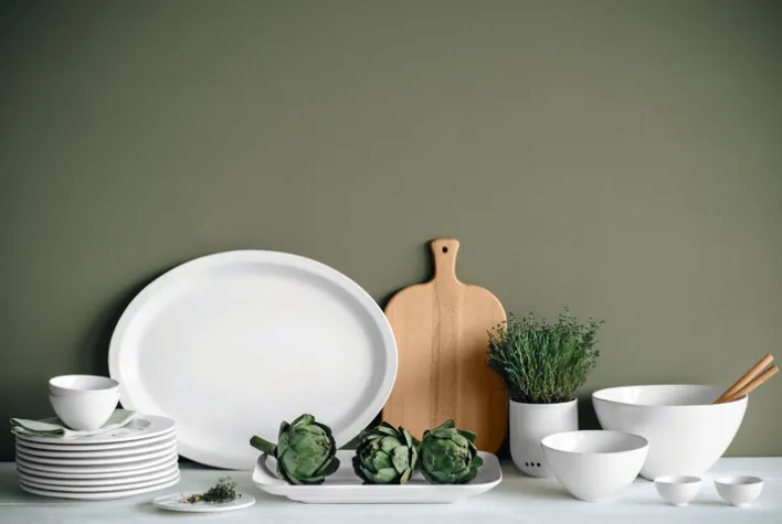 Die ASA Platte GRANDE misst 43 x 57 cm und besteht aus Keramik in Weiß. Sie ist sowohl mikrowellengeeignet als auch spülmaschinengeeignet.