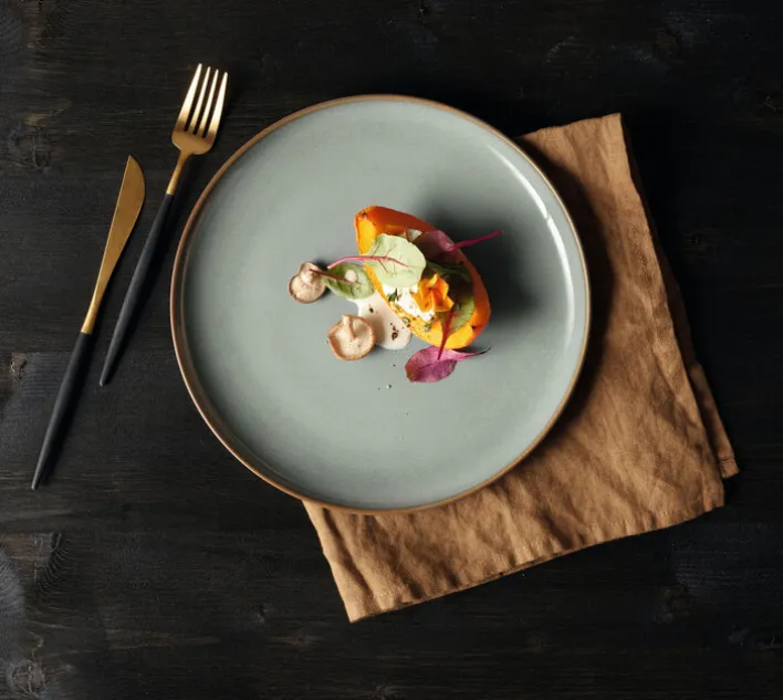 Der ASA Speiseteller SAISONS ist aus eukalyptusgrünem Steinzeug gefertigt. Er ist rund und besitzt einen Durchmesser von 26,5 cm. Der flache Teller darf in die Mikrowelle und in die Spülmaschine gegeben werden.