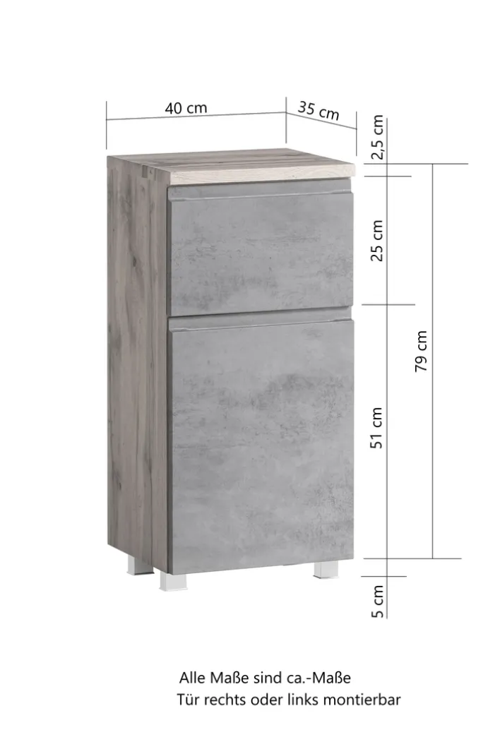 Breite: 40 cmHöhe: 79 cmTiefe/Ausladung: 35 cmLänge: 79 cm