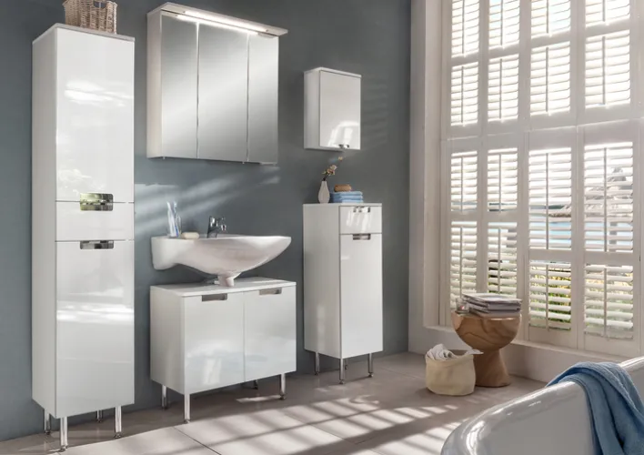 im Lieferumfang enthalten PORTA: 1 Bad-Unterschrank lt. AusstattungLieferhinweise PORTA: Alle Maße sind circa Angaben. Geringfügige Abweichungen sind möglich.Die Lieferung erfolgt je nach Artikelart frei Verwendungsstelle, frei Bordsteinkannte auf einer Einwegpalette oder als Paket. Bitte trage Sorge dafür, dass am vereinbarten Speditionsliefertermin die Ware entgegengenommen werden kann.Lieferhinweis: ohne DekorationLieferzustand: zerlegt