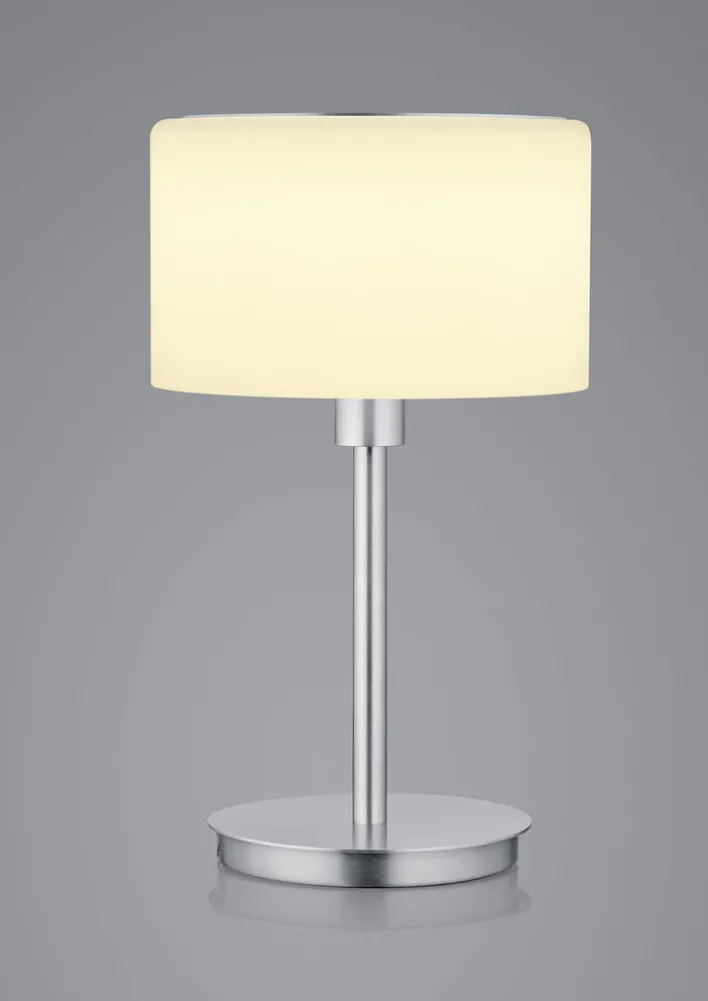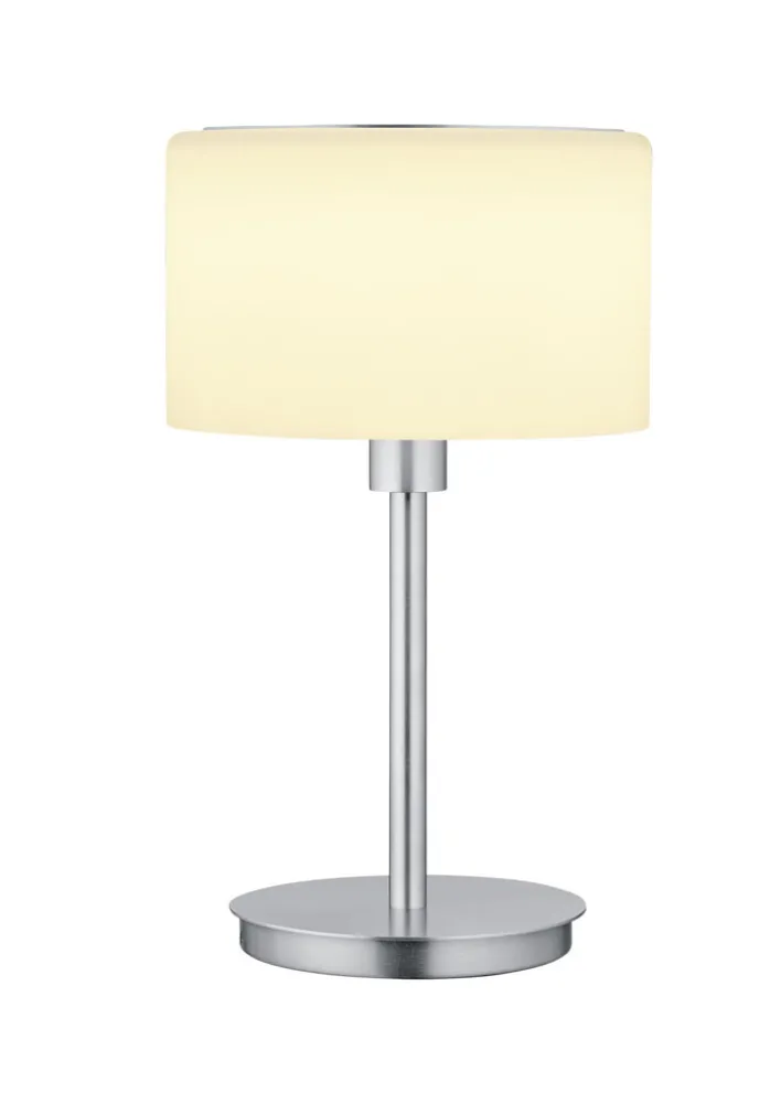 Die BANKAMP Retrofit Tischlampe KARL75 ist 34 cm hoch und hat einen Durchmesser von 20 cm. Ihren minimalistischen Lampenfuß aus mattem Metall kombiniert sie mit einem großen Schirm aus mattem Opalglas. Der Glasschirm strahlt das Licht in alle Richtungen ab und sorgt für eine komplett blendfreie Beleuchtung. Die Tischleuchte ist für ein 10 Watt AGL oder Retrofit Leuchtmittel mit E14-Fassung geeignet. Dadurch punktet sie neben stylischem Look und komfortablem Licht mit einem geringen Energieverbrauch.