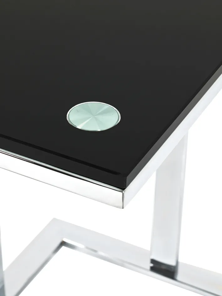 Der Beistelltisch vereint das Gestell aus chromfarbigem Vierkantstahlrohr mit einer Ablage aus schwarzem Sicherheitsglas. Mit einer Dicke von 10 mm ist die Ablage sehr robust und belastbar. Der Beistelltisch hat eine Höhe von 58 cm und kann mit seiner C-Form platzsparend unter die Couch geschoben werden. Auf seiner Ablage bietet er ausreichend Platz für Snacks, Getränke, Laptop und vieles mehr. Alltagsgegenstände sind somit stets griffbereit.