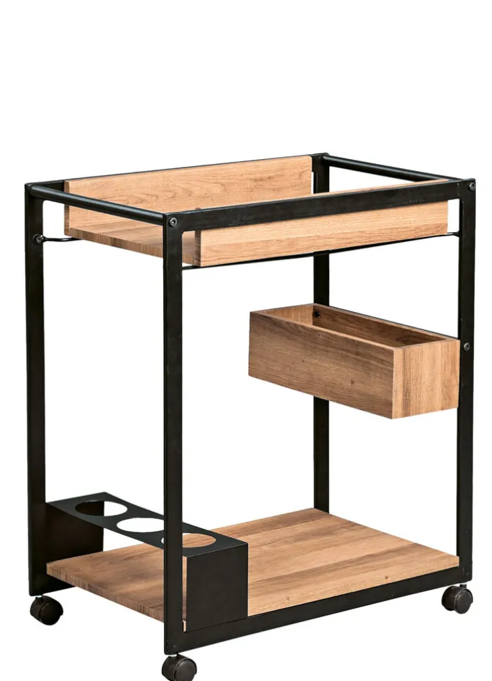 KUBA ist ein Beistelltisch aus dem Hause QUARTIER, der mit einer Kombination aus Holznachbildung in Braun und Metall in Schwarz einzigartige Akzente in jedem Ambiente setzt. Er begeistert mit einem auf praktischen Nutzen ausgerichteten Design, umfassendem Platzangebot und zeitgemäßer Mobilität. Der Beistelltisch KUBA von QUARTIER verfügt über ein gradlinig gestaltetes Gestell aus Metall in Schwarz, welches mit vier leicht laufenden Rollen ausgestattet ist. Aus Eiche Nachbildung in hellem Braun besteht die untere Ablage ebenso wie der oberere Einsatz mit Seitenwänden und eine mittig an der Seite angebrachte Box. Die untere Ablage ist zusätzlich mit einer Halterung aus Metall in Schwarz für Getränke versehen. Die umfassende Ausstattung und die flexible Möglichkeit der Anwendung inspirieren zu den unterschiedlichsten Einsätzen in der ganzen Wohnung. KUBA kann als Beistelltisch im Wohnzimmer in der Nähe eines Polstermöbels für angenehmen Komfort sorgen. Er kann zudem im Esszimmer neben dem Tisch Getränke und Speisen aufnehmen und im Homeoffice als Ablagetisch dienen. In Ihrem porta! Online Shop können sie weitere schöne und praktische Beistelltische entdecken. #porta #urbanjungle #portamöbel