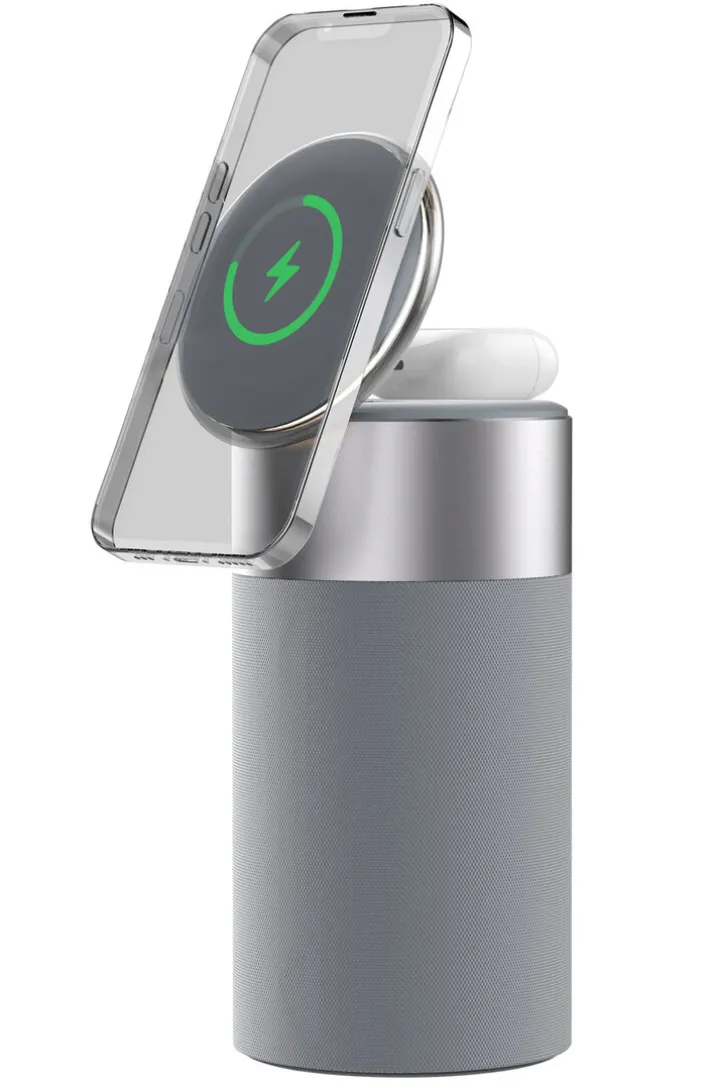 Der in Grau gehaltene Bluetooth-Lautsprecher mit Ladefunktion und Nachtlicht erfreut nicht nur Augen und Ohren, sondern glänzt auch anderweitig.