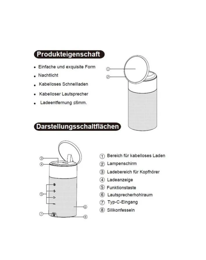 Dieser stylishe Lautsprecher ist ein Blickfang in jedem Raum. Er hat eine Breite und Tiefe von je 8,5 cm sowie eine Höhe von 17,2 cm. An ihm lassen sich sowohl Mobiltelefone als auch Kopfhörer kabellos aufladen. Praktischerweise ist er außerdem mit einer Ladeanzeige ausgestattet. Und auch Funktionstasten besitzt er, sodass ein bequemes Abspielen von Musik möglich ist. Darüber hinaus hat das Gerät einen USB-Anschluss zum bequemen Verbinden mit anderen Devices. Mit einem Gewicht von gerade mal 1 kg kann man es auch leicht transportieren.