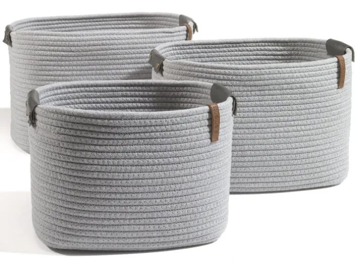 Aus einem grauen Mischgewebe gefertigt, ist der Aufbewahrungskorb von casaNOVA in Seiloptik so praktisch wie dekorativ. Der rechteckige Korb hat eine Breite von 28 Zentimetern, ist 20 Zentimeter tief und 22 Zentimeter hoch.