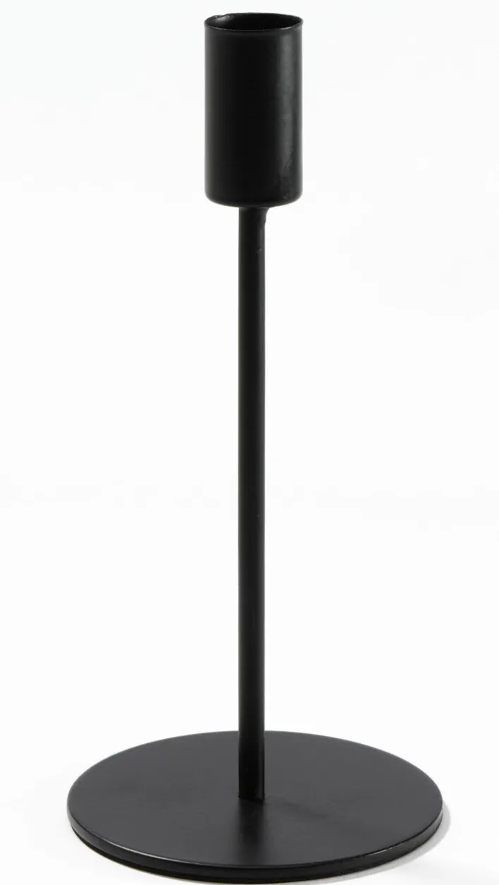Der Kerzenständer von casaNOVA ist aus schwarzem Metall im Farbton Mitternacht gefertigt und 19 Zentimeter hoch. Der Durchmesser liegt bei 8,5 Zentimetern, er ist für eine Stabkerze gedacht.