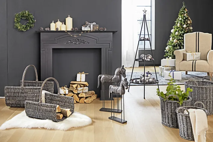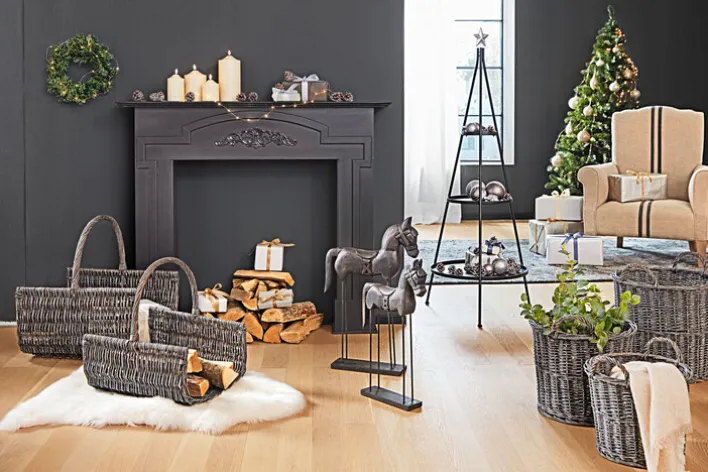 Der casaNOVA Korb mit 2 Henkel MITTERNACHT hat einen Durchmesser von 41 cm und begeistert mit einem natürlichen Design in einem dunklen Grauton.
