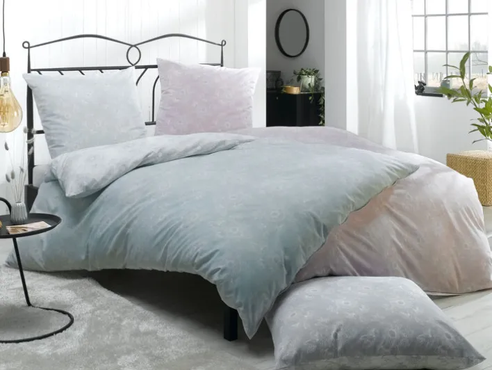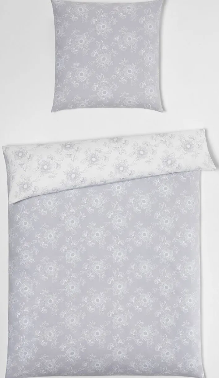 Die graue casaNOVA Renforcé-Bettwäsche KIM für 135 x 200 cm große Einziehdecken zieht mit ihrem eleganten Blumendesign alle Blicke auf sich und sorgt für ein gemütliches Ambiente.