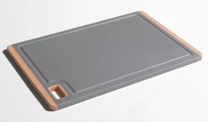 Das moderne casaNOVA Schneidebrett in den Maßen 30×20 cm besteht aus robustem Kunststoff und präsentiert sich vorwiegend in einem aparten Grau. Orangefarbige Akzente lockern den praktischen Küchenhelfer optisch auf.