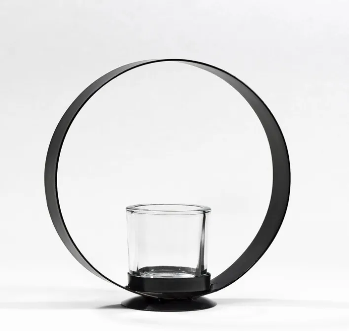Abwechslung gefällig? Der casaNOVA Teelichthalter ist eine ausgefallene Alternative zum klassischen Kerzenglas. Bei diesem Modell befindet sich der Glaseinsatz in einem senkrecht stehenden Ring aus schwarzem Metall, der 19 cm im Durchmesser misst. Bestückt mit einem handelsüblichen Teelicht, verbreitet der casaNOVA Teelichthalter in jedem Raum eine behagliche und angenehme Atmosphäre. Der Kerzenhalter zum Hinstellen besteht aus schwarzem Aluminium. Für den sicheren Stand sorgt ein Fuß aus dem gleichen Material. Das Kerzenglas besteht aus Klarglas, sodass das Licht seine Wirkung optimal entfalten kann. Der moderne Teelichthalter kann je nach Wunsch auf einer Kommode oder einem Tisch platziert werden. Tipp: Zur Weihnachtszeit mit weiteren festlichen Deko-Objekten kombinieren und ein Teelicht mit weihnachtlichem Duft verwenden!