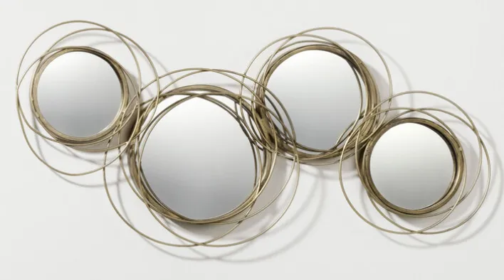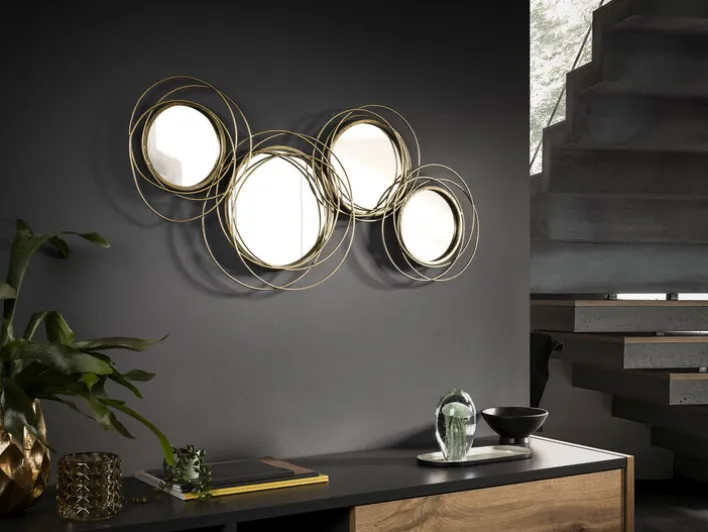 Wer in seiner Wohnung außergewöhnliche Deko liebt, für den ist die casaNOVA Wanddeko SPIEGEL genau richtig. Sie besteht aus vier goldfarbigen Metallringen, von denen jeder auf attraktive Art ineinander verschlungen anmutet. Die Spiegel innerhalb der Ringe geben dem schönen Stück zudem einen praktischen Nutzen. Mit ihrer Größe von 79 mal 38 cm verleiht die Wanddeko SPIEGEL einer kahlen Wand den besonderen Reiz und wird zum Hingucker in jedem Raum. Die Kombination aus Metall und Spiegelglas macht die casaNOVA Wanddeko zu einer Bereicherung im modernen Ambiente, sie passt sich dank ihrer warmen Ausstrahlung aber auch wunderbar dem klassischen oder natürlichen Einrichtungsstil an.