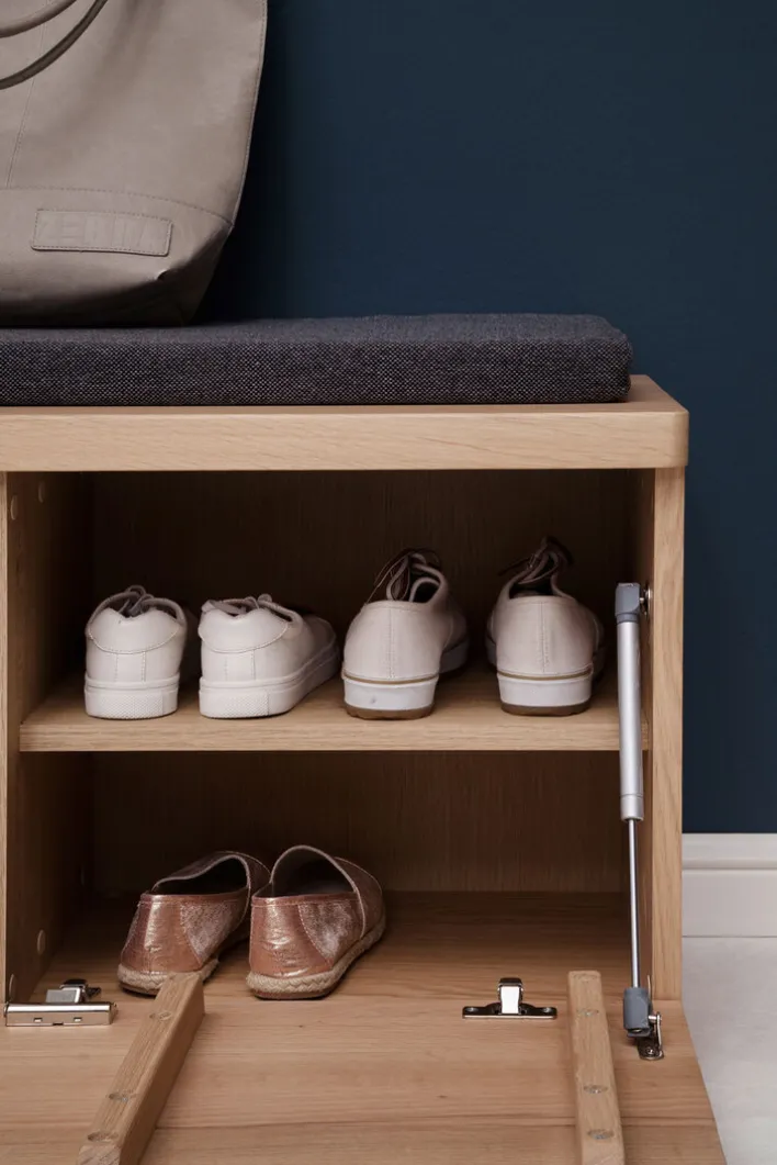 Die Bank MADRID von dem namhaften Hersteller CASAVANTI ist aus Balkeneiche Bianco massiv gearbeitet und ein attraktives Möbelstück, welches sich in eine Flurgarderobe integriert. Dabei lässt sich die Bank auf zweifache Weise nutzen. Zum einen ist sie eine Sitzbank und zum anderen verfügt sie über Stauraum. Besonders hilfreich ist sie als Sitzgelegenheit für ältere Personen. Sie leistet aber auch für Kinder, die beim Binden von Schnürsenkeln noch Hilfe benötigen, ausgezeichnete Dienste.