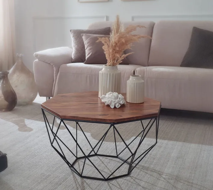 Dieser CASAVANTI Couchtisch wird durch sein elegantes und eindrucksvolles Design ganz sicher zum Blickfang in jedem Wohnraum. Die Tischplatte besteht aus massivem Sheesham Holz und bietet mit einem Durchmesser von 66 cm ausreichend Abstellfläche. Das pulverbeschichtete Edelstahlgestell in der Farbe Schwarz bildet einen gelungenen Kontrast zur natürlichen Maserung der Holzplatte.