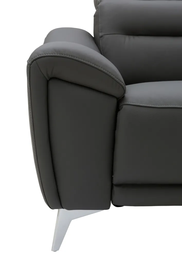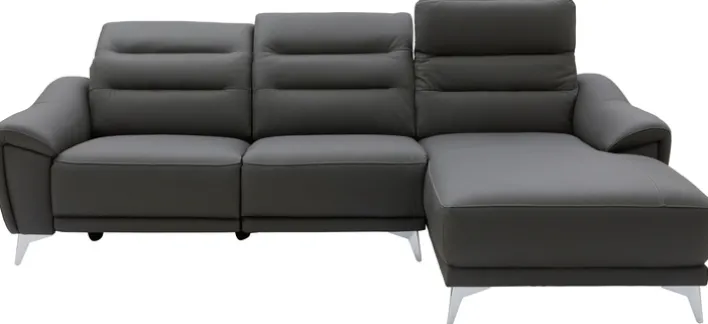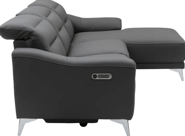 Das graue CASAVANTI Ecksofa ASTI hat ein Stellmaß von 263 x 163 cm und basiert auf robustem Lärchenholz. Bespannt mit einem Lederbezug und mit chromfarbigen Metallfüßen versehen wirkt es top modern. Natürlich sieht das Ecksofa nicht nur gut aus. Die Polsterung sorgt für ein bequemes Sitzen und Liegen. Ein Highlight ist das Sofa jedoch aufgrund von Relaxfunktion und Kopfteilverstellung. Außerdem bietet es einen USB-Anschluss zum Aufladen von Smartphone und Tablet.