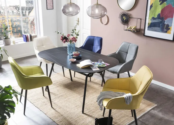 Zwei überzeugende Materialien sind bei diesem CASAVANTI Esstisch vereint. Die Tischplatte aus Sinterstein und das Metallgestell ergänzen sich perfekt. Dazu kommt die attraktive ovale Form, ohne Ecken und Kanten. Kräftig buntes Interieur passt genauso gut zu ihm wie Ton in Ton abgestuftes Geschirr. Geschaffen wurde der Esstisch für den Innenbereich, wo er in Essküchen, Esszimmern und an Essplätzen bestens zur Geltung kommt. Eine ausführliche Montageanleitung und Pflegehinweise sind im Lieferumfang enthalten.