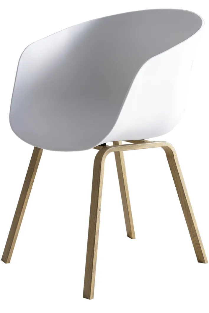 Der moderne CASAVANTI Esszimmerstuhl hat eine Größe von 54,5 x 77,5 x 54 cm und basiert auf einem soliden Vierfußgestell aus Metall, das ihm eine hohe Belastbarkeit von bis zu 120 kg verleiht. Seine Metallbeine in Holzoptik kombiniert der Stuhl mit einer ergonomisch geformten Sitzschale aus weißem Kunststoff. Diese ist mit festen Armlehnen ausgestattet, die den Sitzkomfort weiter erhöhen und zugleich das Aufstehen vom Tisch erleichtern.