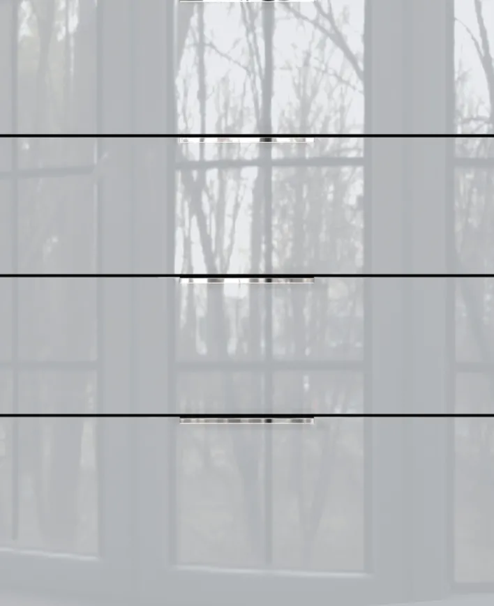 Die Kommode OAKLAND 184 x 102 x 42 cm beeindruckt mit einer modernen Kombination aus einer Glasfront in Silbergrau und einem Korpus aus hochwertigem Holzwerkstoff mit Melaminharzbeschichtung in Graphit. Vier praktische Schubkästen schaffen viel Stauraum.