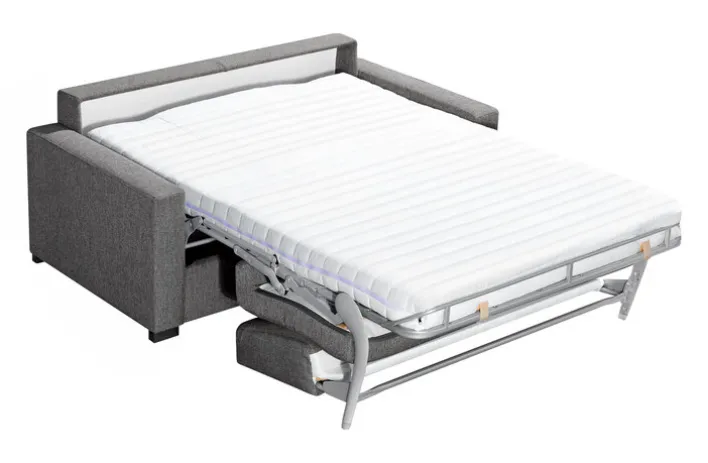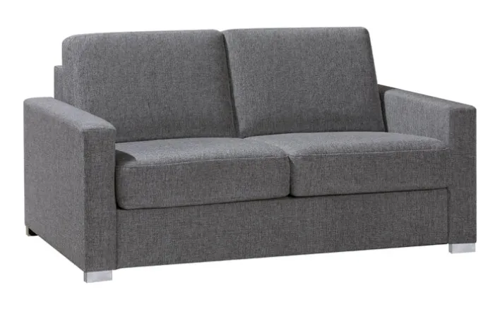 Dieses Schlafsofa misst als Sofa 168 x 97 cm und bietet einen schönen Stoffbezug in Grau. Wird es ausgezogen, zeigt sich eine Liegefläche von 130 x 200 cm.