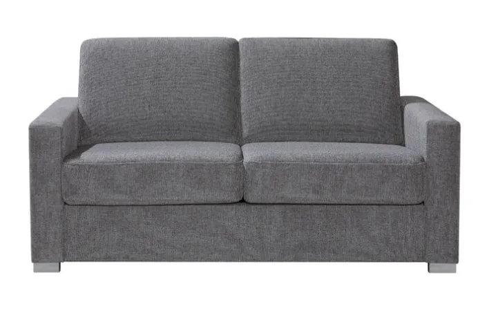 Zwei Personen haben auf dieser Couch mit Schlaffunktion sowohl im Sitzen als auch im Liegen Platz. Das Sofa ist klein genug, um nicht nur im Wohnzimmer, sondern auch in einem Gästezimmer zu stehen. Hier kann es, da Sie meist auch ein Bett aufgestellt haben, dafür sorgen, dass statt einer oder zwei Personen nun drei oder vier Personen übernachten können. Sie können also Freunde oder eine Familie zu Besuch über Nacht bekommen. Das Schlafsofa in Grau besitzt zudem eine Kaltschaummatratze, auf der Sie oder Ihre Gäste angenehm schlafen werden. Die Rückseite der Couch ist echt bezogen, sodass sie auch mitten im Raum stehen kann. In diesem Fall haben Sie mehr Wandplatz für andere Möbel. Für kleine Wohnzimmer ist ein Sofa mit Bettfunktion eine optimale Lösung und dieses Modell sieht zudem schick aus und findet überall einen Platz.