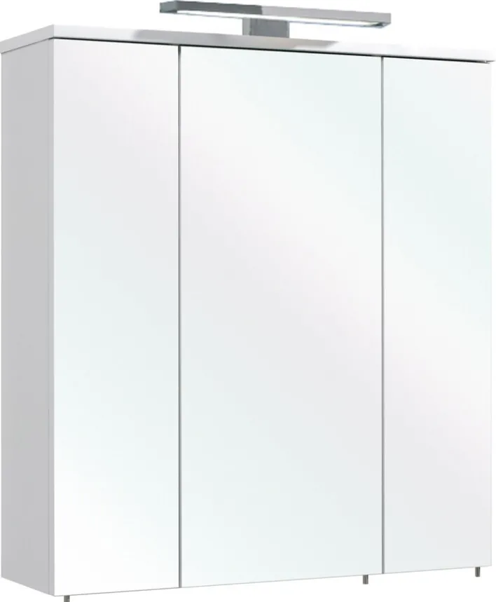 Mit seinem Korpus aus stabiler Holznachbildung präsentiert sich der CASAVANTI Spiegelschrank GELA IV in einer eleganten Kombination aus glänzend weißer Lackierung und hochwertigem Spiegelglas. Hinter den 3 Drehtüren sorgen insgesamt 6 Einlegeböden für eine sorgsam durchdachte Stauraumaufteilung. Der moderne Spiegelschrank ist mit einer integrierten Steckdose (beispielsweise für einen Rasierapparat) sowie mit einem Schalter für die integrierte Beleuchtung ausgestattet. Die insgesamt schlichte Optik erlaubt es, den CASAVANTI Spiegelschrank GELA IV sehr universell in unterschiedliche Einrichtungsstile zu integrieren.