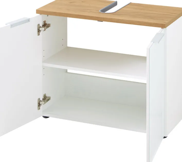 Ein Unterschrank mit Stil: Der CASAVANTI Waschbeckenunterschrank CARA begeistert mit einem tollen Design in der Farbgebung Weiß/Braun. Hinter zwei Drehtüren bietet der Badezimmerschrank viel Stauraum für Reinigungsprodukte, Handtücher und vieles mehr. Mit unterschiedlichen modernen Komponenten sorgt dieses Möbel für ein zeitgemäßes Ambiente in Ihrem Badezimmer.