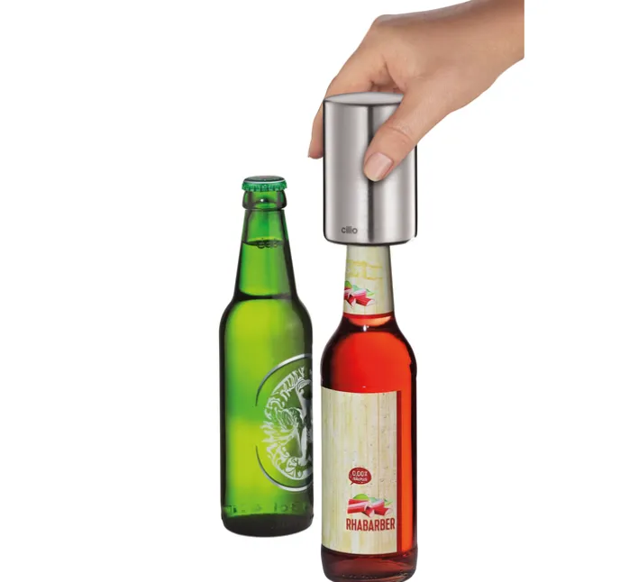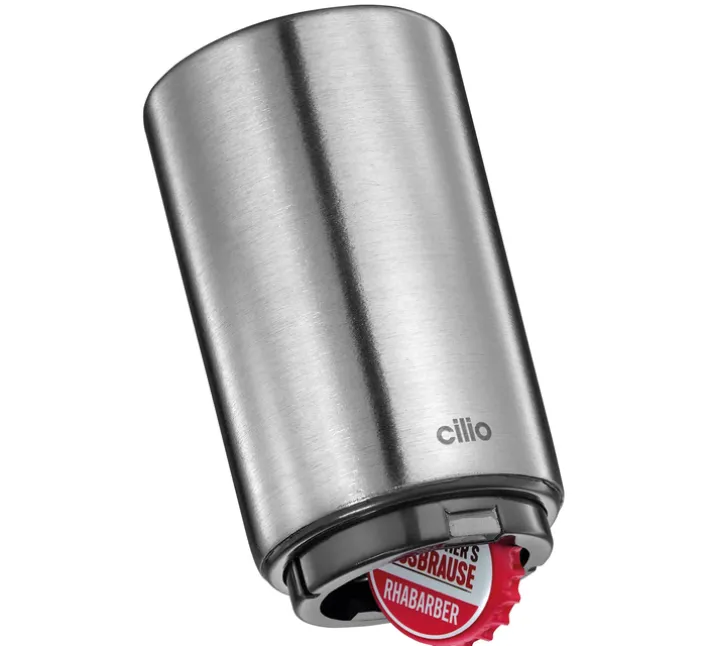 Das aus Edelstahl gefertigte Modell ist nicht nur handlich und vielseitig verwendbar: Es kommt mit einem natürlichen Korrosionsschutz daher, hält mechanischen Einflüssen solide stand und erweist sich als langlebiges Küchen- und Barzubehör. Wer einen qualitativ hochwertigen Flaschenöffner sucht, wird bei cilio fündig.