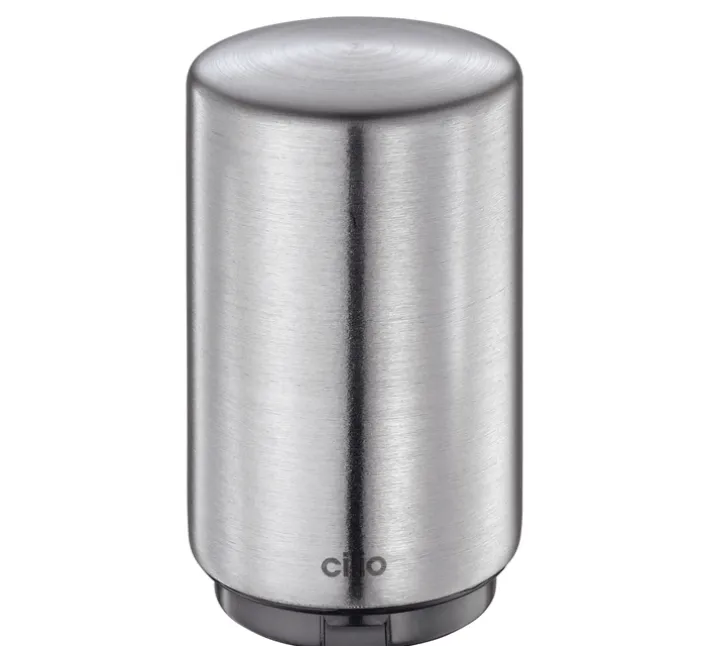 Der Flaschenöffner APERTO des Herstellers cilio – einer Marke für Küchenzubehör, die sich durchdachter Lösungen rühmt – hat die Abmessungen 5,2 x 8,5 cm und passt auf jede handelsübliche Weinflasche. Er zeichnet sich durch ein Öffnungssystem aus, das federgelagert ist und das problemlose Öffnen der Flasche im Handumdrehen gelingen lässt. Weiterhin ist der Flaschenöffner mit einem Magnethalter versehen.