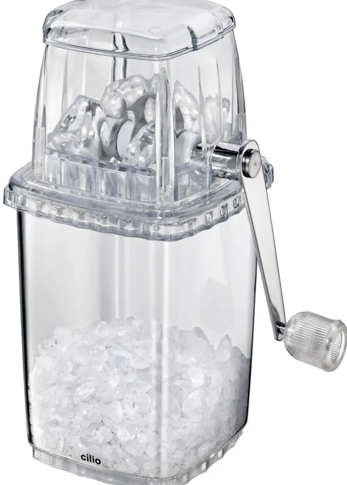 Der Betrieb ist ganz einfach: Über eine Handkurbel wird eine Metallwelle mit rostfreien Stahlmessern angetrieben, die das Eis zerteilen. Das im Auffangbehälter landende Eis eignet sich perfekt für die Herstellung von Longdrinks, Cocktails, Smoothies und Eiskaffee. Empfindliche Oberflächen werden geschont, denn das Gerät steht auf Gummifüßen. Wie bei allen Küchen-Accessoires von cilio wird Wert auf eine hervorragende Verarbeitung aller verwendeten Materialien gelegt.