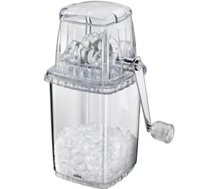Der cilio Ice Crusher BASIC aus hochwertigem, transparentem Acryl mit den Maßen 16 x 23,5 x 12 cm (BHT) zerschneidet Eiswürfel in kleine Stückchen. Zerstoßenes Eis hat gegenüber kompakten Eiswürfeln den Vorteil, dass es Getränke schneller kühlt.