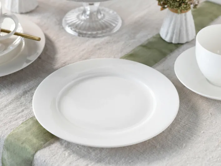 Die creme-weißen FLEUR ROYAL Dessertteller im 6er Set von CreaTable sorgen dafür, dass ein leckeres Dessert nach dem Hauptgang auch entsprechend stilvoll präsentiert wird. Das gelingt auf den weißen Porzellantellern ganz leicht, die aufgrund ihrer flachen Form sowohl für Kuchen als auch andere typische Desserts sehr gut geeignet sind.