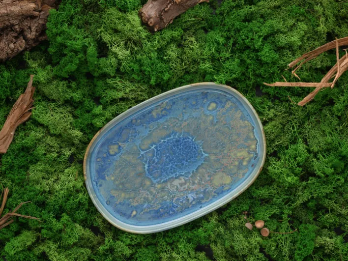 Die CreaTable Servierplatte YUKI mit 3 cm hohem Rand verdankt ihr außergewöhnliches Design einer Reaktivglasur. Diese erzeugt während des Brennvorgangs individuelle Farbverläufe und macht aus jeder Servierplatte ein Unikat. Die besondere Optik hat der YUKI-Serie den German Design Award 2023 eingebracht. Mit ihrem extravaganten Look setzt die Servierplatte Speisen perfekt in Szene und wertet den festlich gedeckten Tisch auf. Mikrowellengeeignet und spülmaschinenfest, macht sie jedoch auch im Alltag eine gute Figur.