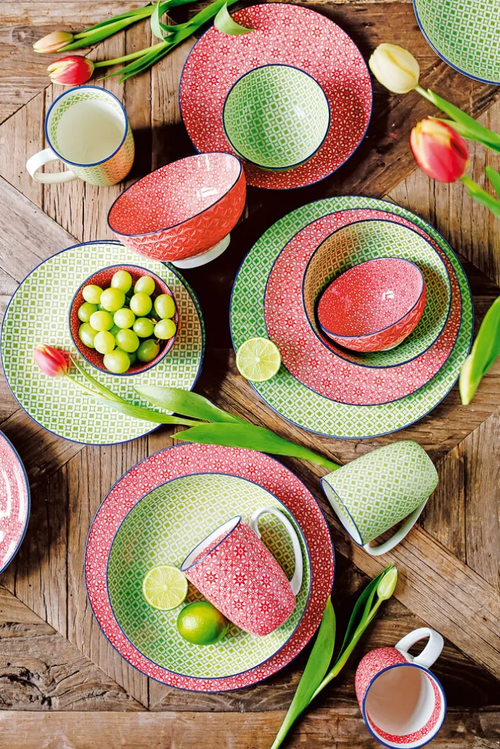 Die variable Geschirr Serie MEDITERRAN, hier der schöne, siebenundzwanzig Zentimeter große Speiseteller in Blau mit einem zarten Muster, bringt mediterranes Flair auf Ihren Tisch. Das hochwertige Steinzeug ist spülmaschinen- und mikrowellenfest. Sie erhalten in Ihrem Online Shop die einzelnen Geschirr Teile der Serie MEDITERRAN in Rot, Blau oder Grün, so dass Sie alle Teile ganz nach Ihrem Geschmack untereinander und miteinander kombinieren können.