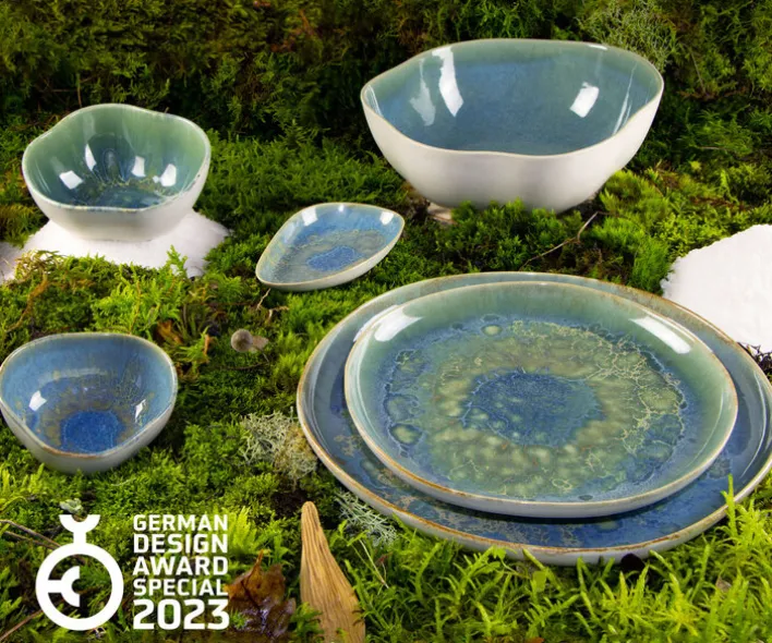 Der Anblick der 6 Speiseteller aus dem CreaTable Set YUKI weckt Assoziationen an die blau-grünen Tiefen der Ozeane. Die außergewöhnliche Farbgebung kommt auf einem weißen Tischtuch oder einer hellen Tischoberfläche besonders gut zur Geltung. Jeder der Teller hat einen Durchmesser von 28 cm und ist somit für das Mittag- oder Abendessen geeignet.